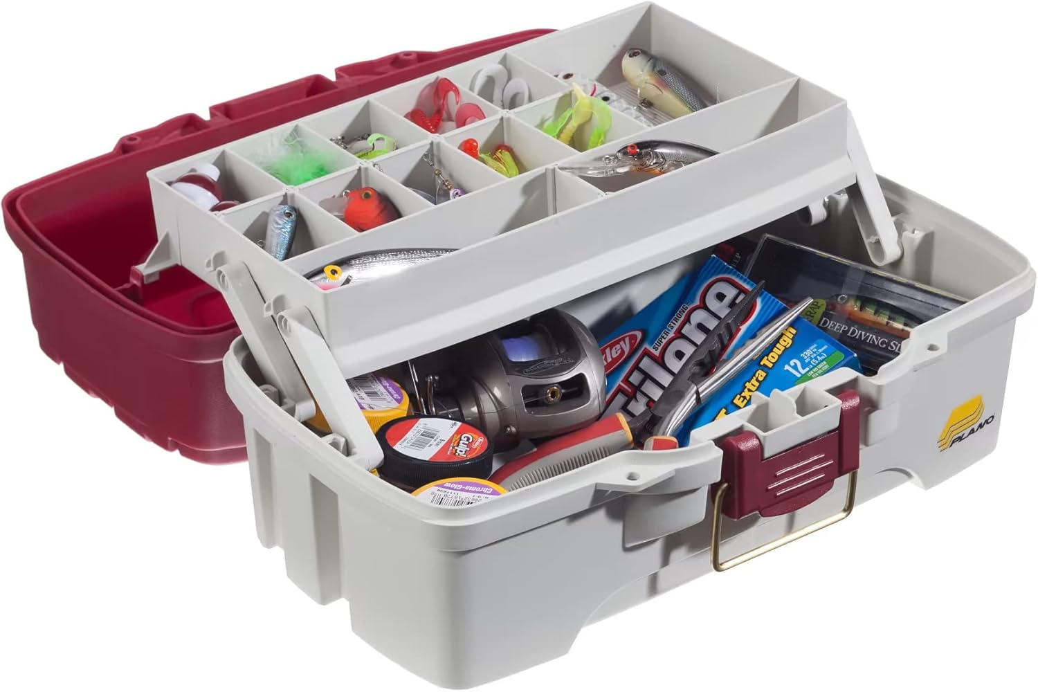 The sleek Red Metallic and Off White design of this tackle box is not only eye-catching but also durable, ensuring that your gear stays protected trip after trip. The 1-tray design provides ample space for your essential fishing tackle, while the dual top access allows for quick and convenient retrieval of your favorite lures, hooks, and accessories.